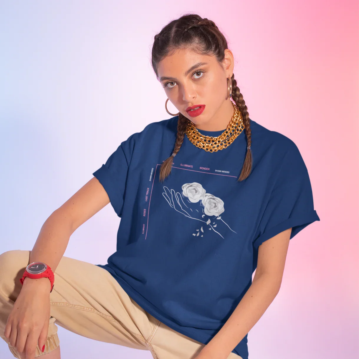 Camiseta Básica Shawn Mendes Roses